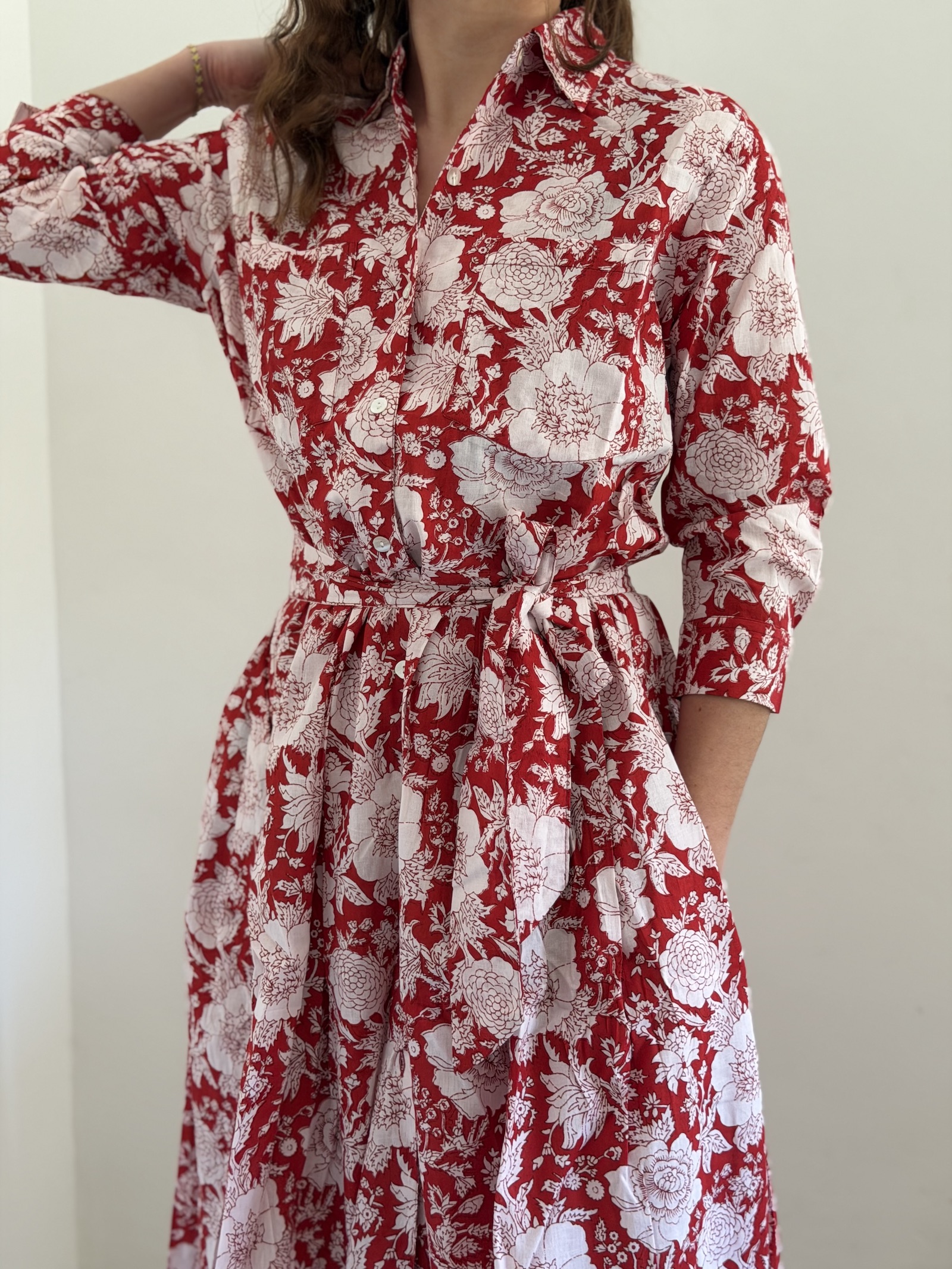 L'impression au bloc est une technique artisanale traditionnelle qui utilise des blocs de bois sculptés à la main pour imprimer le tissu. Ancrée dans les traditions artisanales indiennes, cette technique est lente et exige un savoir-faire exceptionnel. Elle commence par la sculpture des blocs de palissandre et la préparation minutieuse du tissu.
